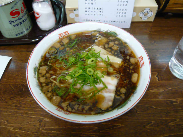 醤油味のスープに、コロコロした背脂が浮いているのが特徴。